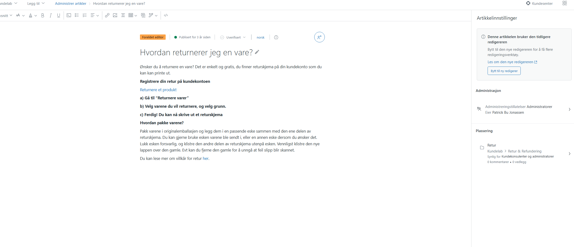 Registrere din retur på kundekontoen